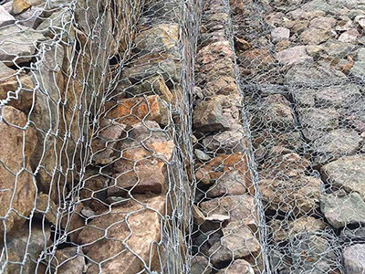 箱型石籠由大規(guī)格六角網(wǎng)聯(lián)結(jié)而成,施工中只需將石塊裝入籠中封口即可。