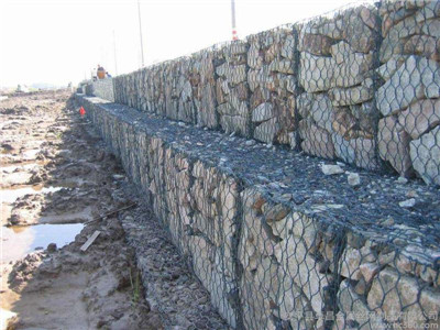 石籠網(wǎng)由具有延展性的鋼絲或者包覆PVC的以上鋼絲使用機(jī)械編織而成,使用該網(wǎng)制作而成的箱型結(jié)構(gòu)就是石籠網(wǎng)箱。根據(jù)ASTM和EN標(biāo)準(zhǔn),所使用的鋼絲直徑根據(jù)工程設(shè)計要求而不同。一般介于2.0-4.0mm之間,石籠網(wǎng)鋼絲的抗拉強度不少于38kg/m2,金屬鍍層重量一般高于245g/m2,石籠網(wǎng)片的邊緣線直徑一般要大于網(wǎng)線直徑。其雙線絞合部分的長度不得小于50mm.以保證絞合部分鋼絲的金屬鍍層和PVC鍍層不受破壞。